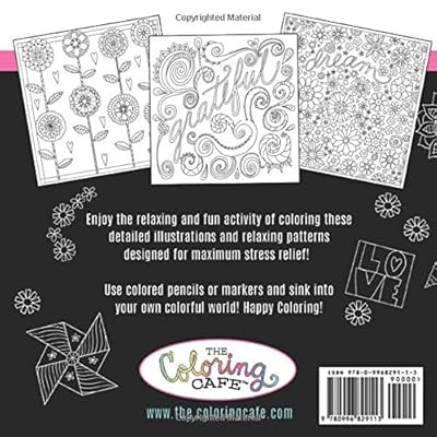 The Coloring Cafe Stress Relief is a delightful member of this popular series of coloring books for adults. Lighthearted patterns (not too complex) and fun illustrations all ready for you to sit down, pick up your pencils and markers and watch the stress start to slip away from your busy life. Color by yourself or with your supportive friends and family! Great for ages from about 12 and up.
